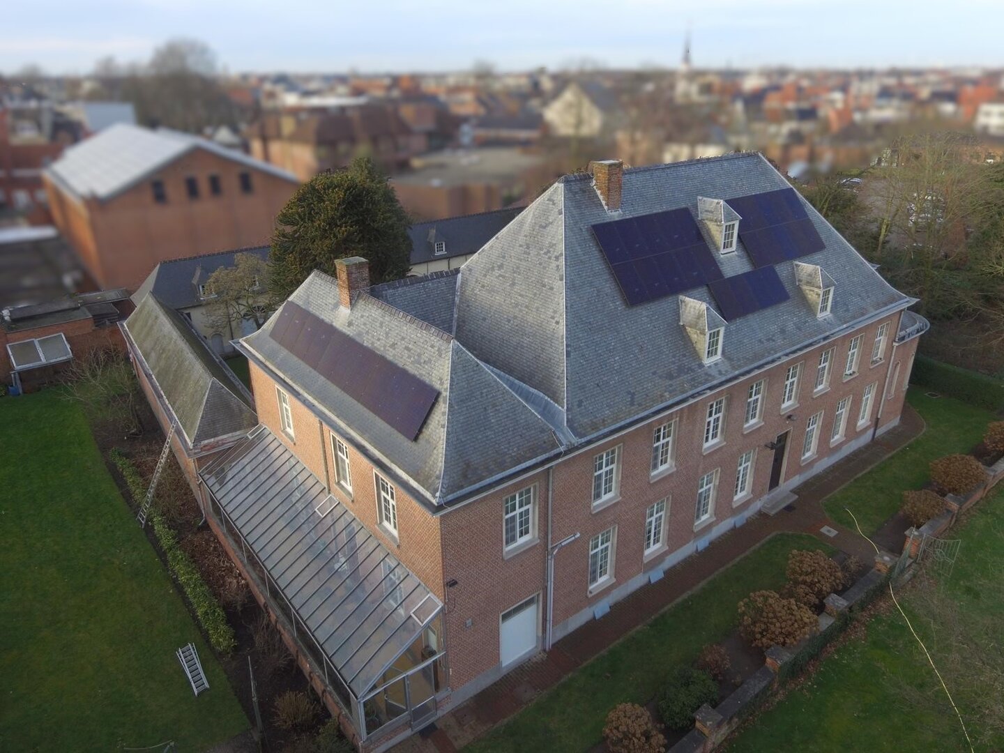 Voor de Kerkfabriek installeerden we 34 zonnepanelen Hyundai 435 Wp op het leiendak van de Dekenij te Sint-Niklaas.